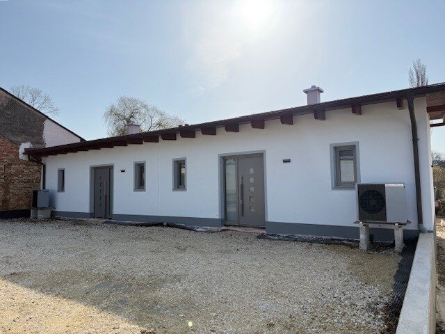 Neue sehr nett angelegte kleine Doppelhaushälfte (in einer Anlage mit 3 Einheiten) mit Terrasse (dort befindet sich auch ein Abstellraum für Gartengeräte) und kleinem Garten sowie 2 Parkplätzen; Wohnfläche ca. 46 m²; Vorraum, geräumiges Wohn-Esszimmer mit neuer Küche und Ausgang auf die Terrasse, Abstellraum, Schlafzimmer, möbliertes Bad, separates WC; Heizung mit Luftwärmepumpe; Mietdauer 5 Jahre, Verlängerung bei Einhaltung des Mietvertrages möglich; Der Vorplatz wird noch gepflastert;
